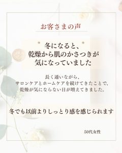 冬になると乾燥が気になる…そんなお悩みをお持ちの50代女性からいただいたご感想です。