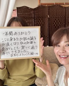 昨年通ってくださったお客様が、施術後に1年間のご感想としてフリップに言葉を書いてくださいました。